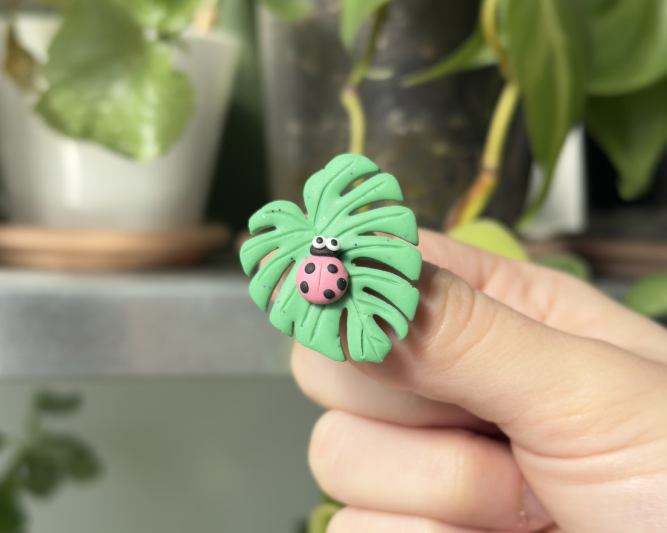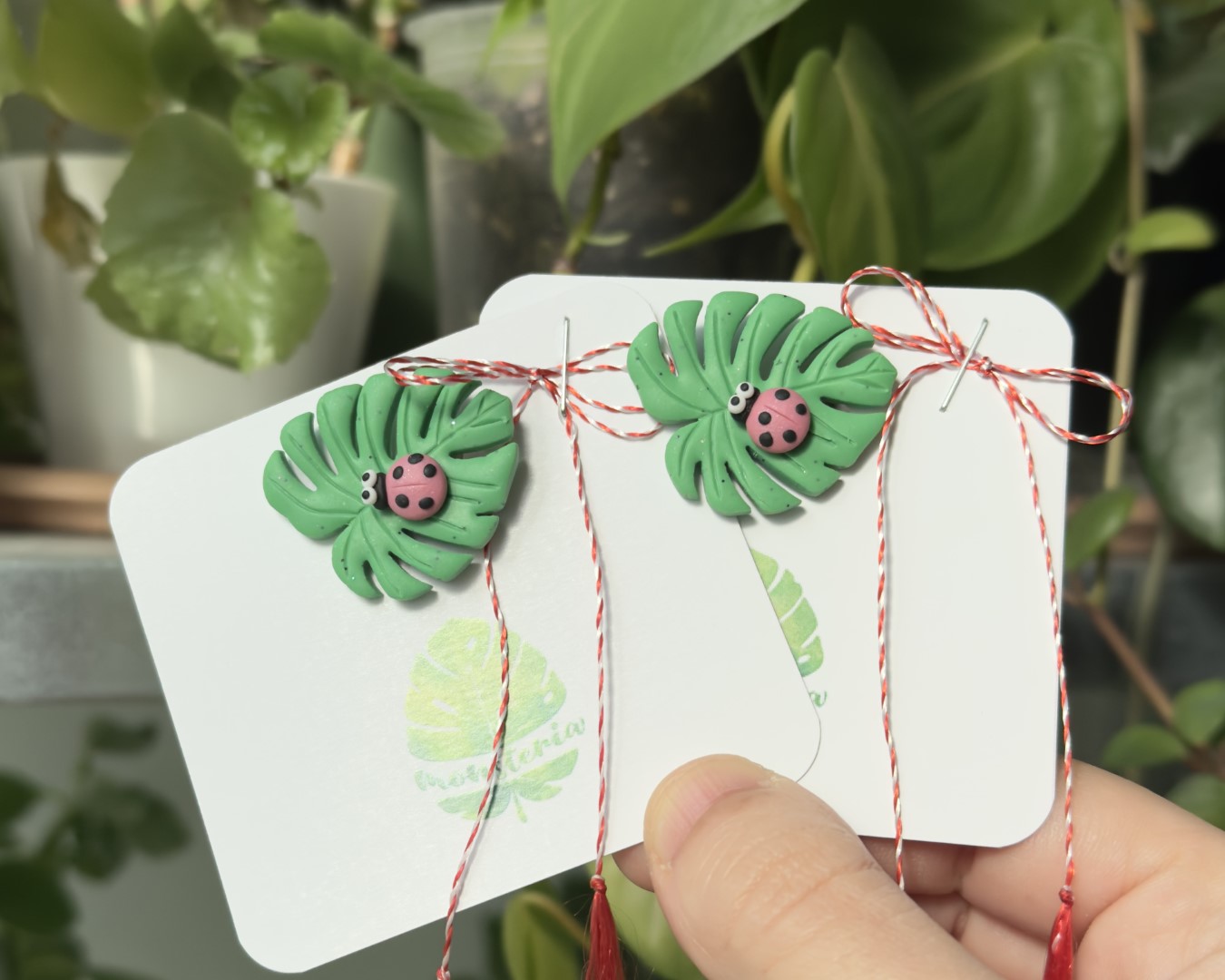 - Design unic: O combinație adorabilă de gărgăriță în culoare vie și frunza de Monstera pentru un aspect distinctiv.
